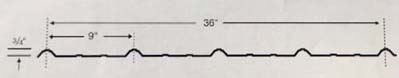 - Imperial Rib style roofing - 9" between main ribs - exposed fastener